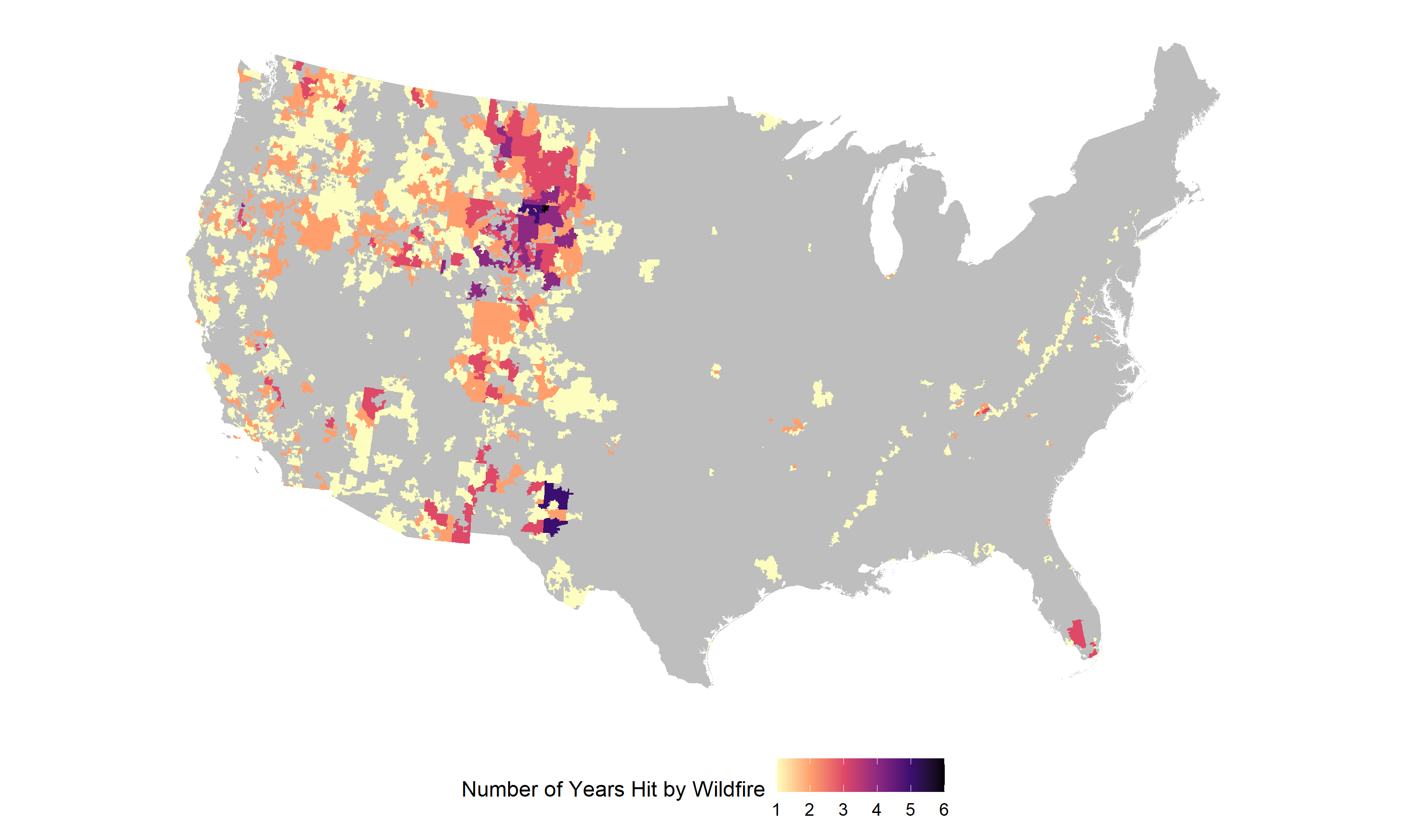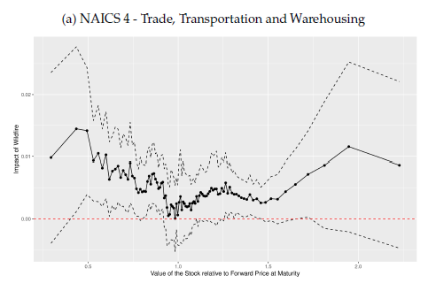 New! “Do Investors Hedge Against Physical Disaster Risk? Option-Implied Risk Aversion to Wildfires” Link to the Paper. Measuring beliefs about natural disasters is challenging. Deep out-of-the-money options allow investors to hedge at a range of strikes and time horizons, thus the 3-dimensional surface of firm-level option prices provides information on (i) skewed and fat-tailed beliefs about the impact of natural disaster risk across space and time dimensions at daily frequency; and (ii) information on the covariance of wildfire-exposed stocks with investors’ marginal utility of wealth. Each publicly-traded company’s daily surface of option prices is matched with its network of establishments and wildfire perimeters over two decades. First, wildfires affect investors’ risk neutral probabilities at short and long maturities; investors price asymmetric downward tail risk and a probability of upward jumps. The volatility smile is more pronounced. Second, comparing risk-neutral and physical distributions reveals the option-implied risk aversion with respect to wildfire-exposed stock prices. Investors’ marginal utility of wealth is correlated with wildfire shocks. Option-implied risk aversion identifies the wildfire-exposed share of portfolios. For risk aversions consistent with Barro (2012), equity options suggest (i) investors hold larger shares of wildfire-exposed stocks than the market portfolio; or (ii) investors may have more pessimistic beliefs about wildfires’ impacts than what observed returns suggest, such as pricing low-probability unrealized downward tail risk. We calibrate options with models featuring both upward and downward risk. Results are consistent a significant pricing of downward jumps.